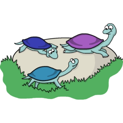 Three turtles sun themselves on a stone.
